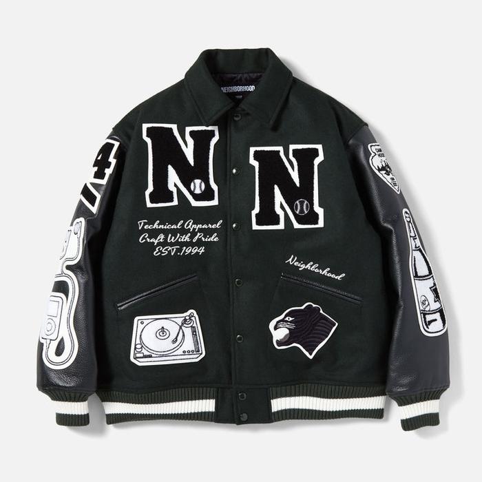 NEIGHBORHOOD STADIUM JK. WO VARSITY JACKET "BLACK" ORIGINAL BNIPWT - M