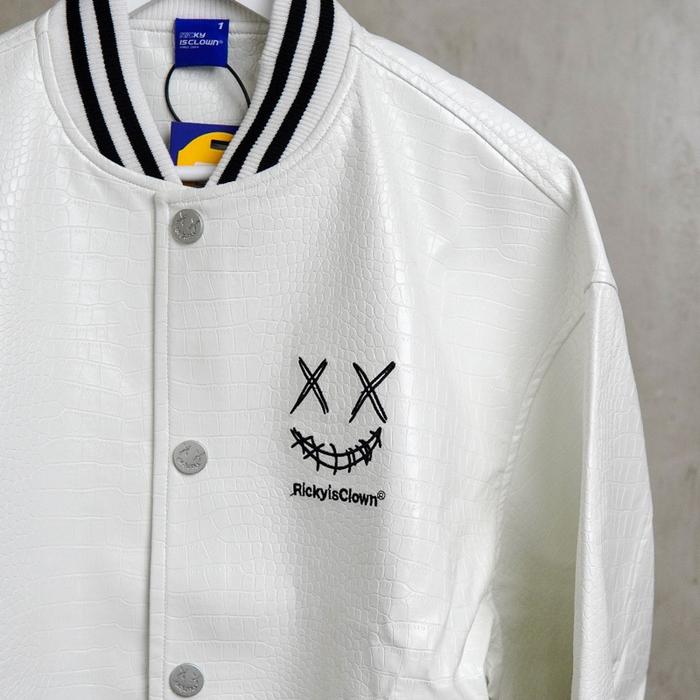 RIC RICKY IS CLOWN MONOCHROME CROCO VARSITY JACKET IN WHITE (UNI)