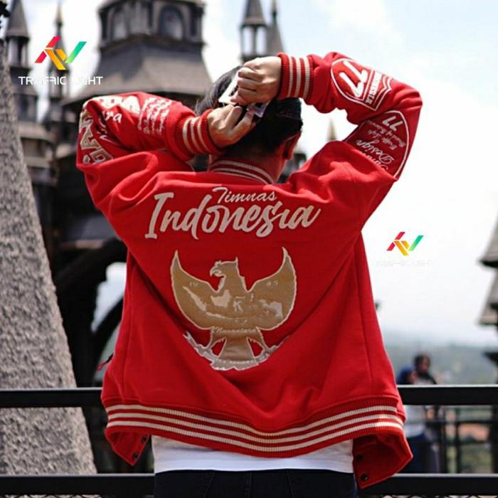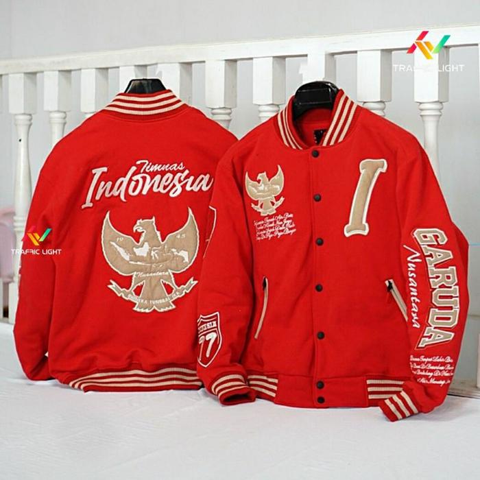 JAKET TIMNAS, JAKET PREMIUM, JAKET VARSITY TIMNAS INDONESIA 2024, JAKET VARSITY PREMIUM, JAKET VARSITY FULL BORDIR, JAKET VARSITY ORIGINAL,JAKET VARSITY PRIA, JAKET VARSITY NITA - MERAH, L