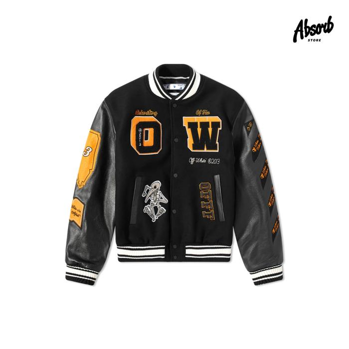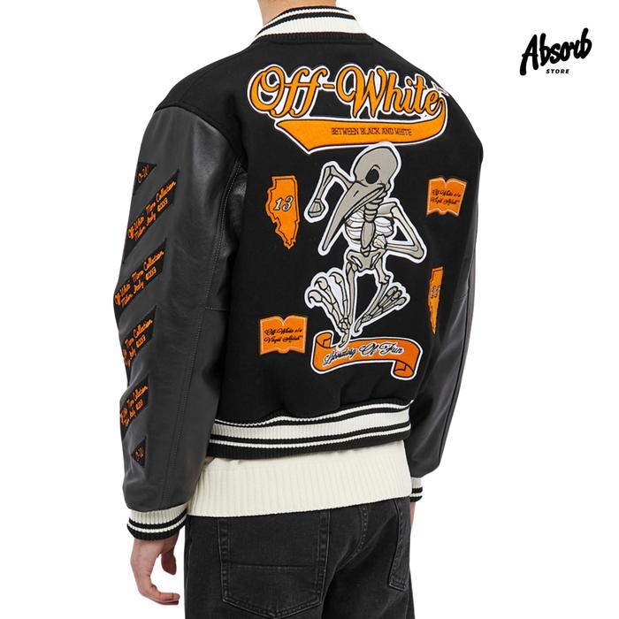 OFF-WHITE LEATHER VARSITY JACKET (BLACK) FW21 - L