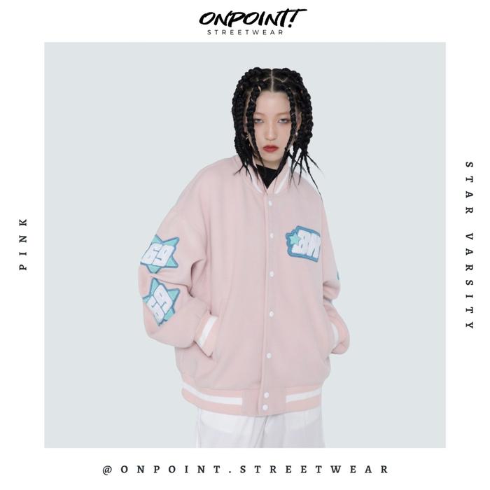 STAR VARSITY - JAKET VARSITY PRIA VARSITY JACKET OUTER PRIA FASHION LAKI STREETWEAR KOREA OVERSIZE - PINK, XXL