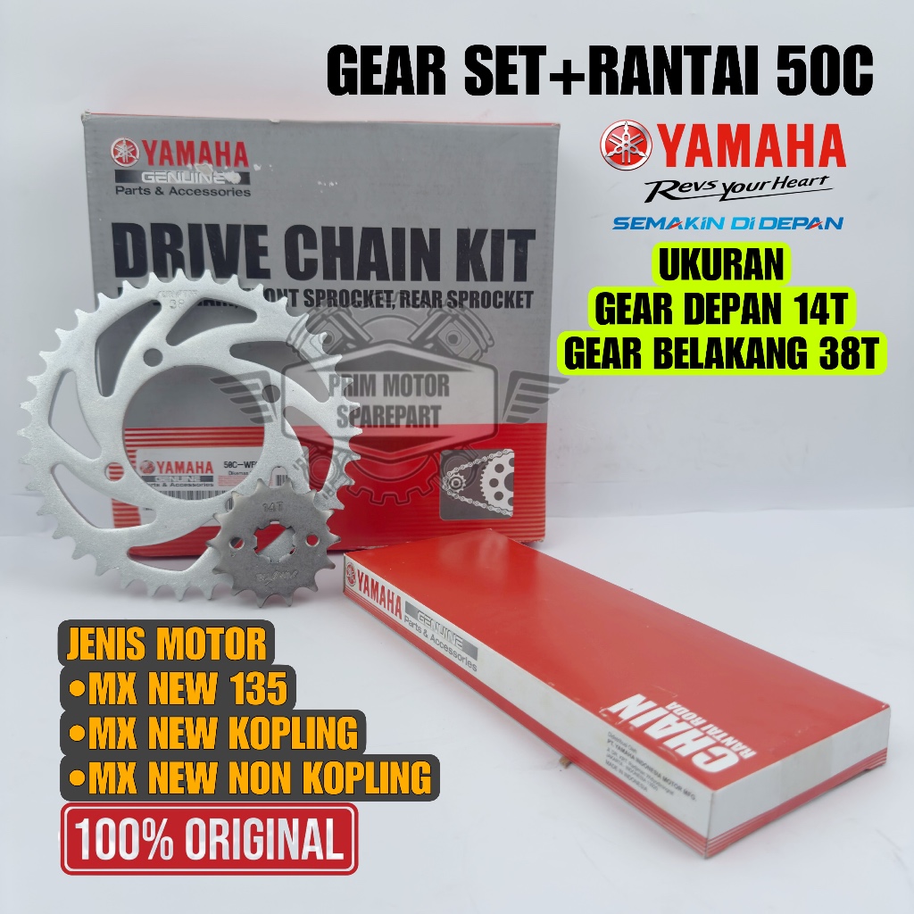 ORIGINAL GEAR SET+RANTAI 50C YAMAHA JUPITER MX NEW, JUPITER MX NEW 135 KOPLING, KUALITAS ASLI YAMAHA YGP