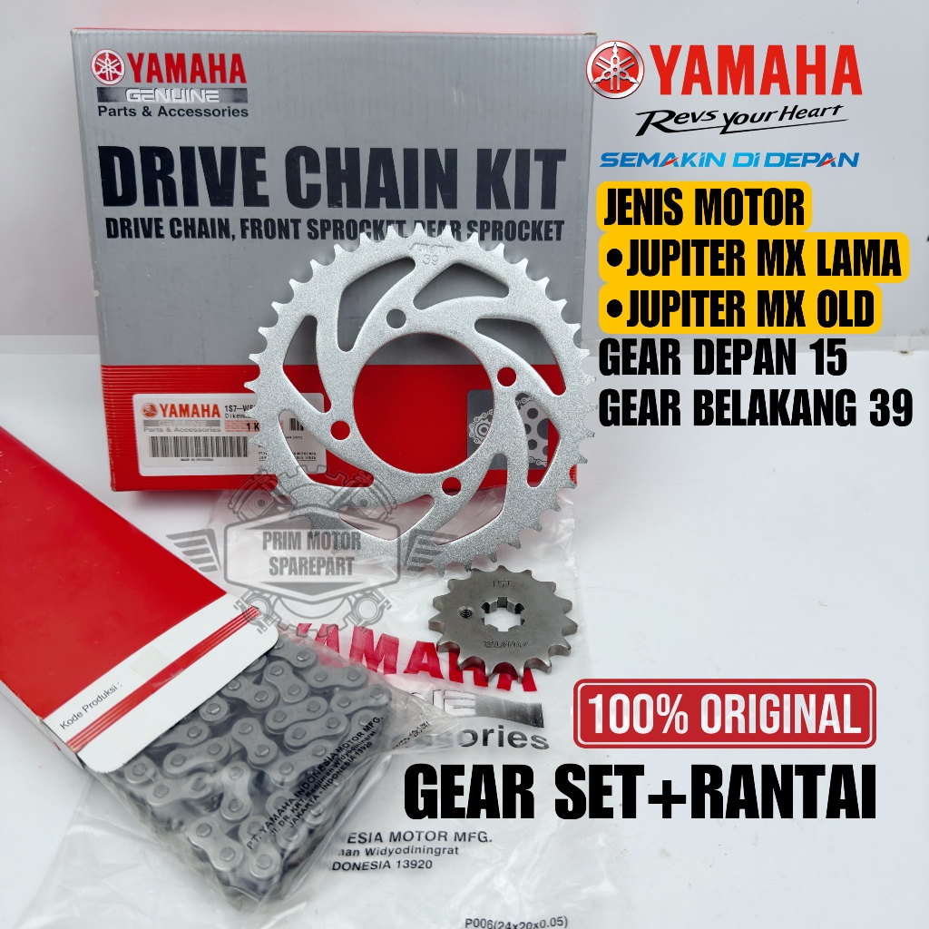 GEAR SET+RANTAI 1S7 ORIGINAL YAMAHA JUPITER MX LAMA , JUPITER MX OLD KUALITAS 100% ASLI YAMAHA YGP