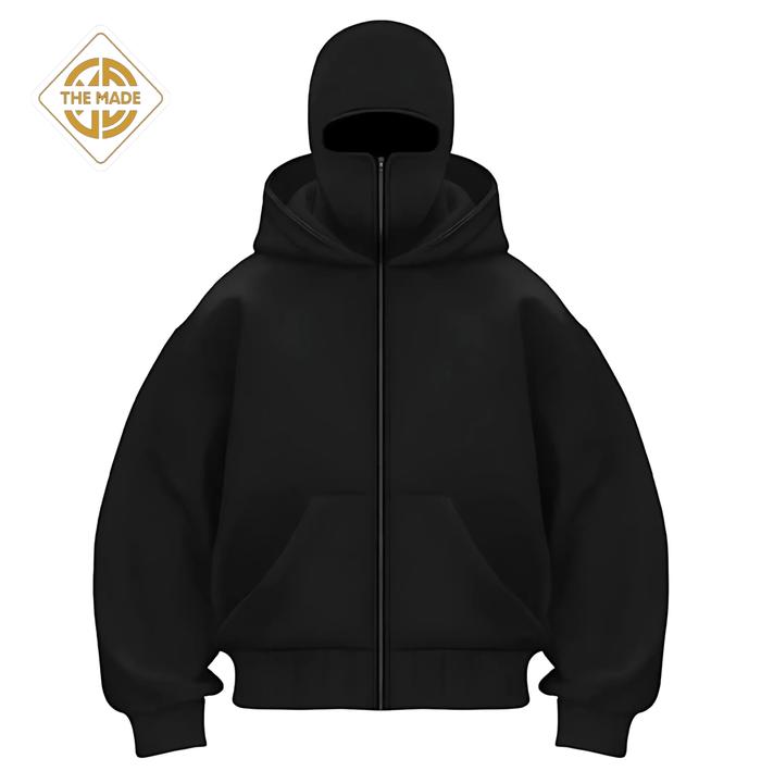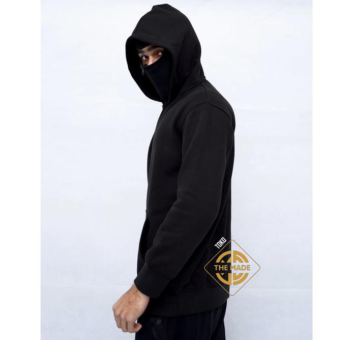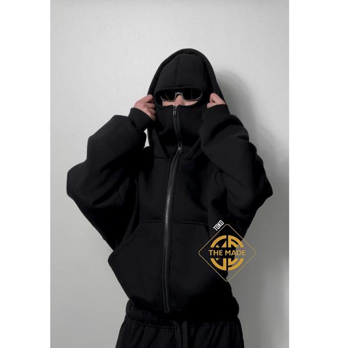THE MADE HOODIE BALACLAVA ZIPPER BOXY BLACK DOUBLE KUPLUK BAHAN TEBAL KEREN SWEATER JUMPER PRIA WANITA HITAM DISTRO NYAMAN SIMPLE - HITAM, XS
