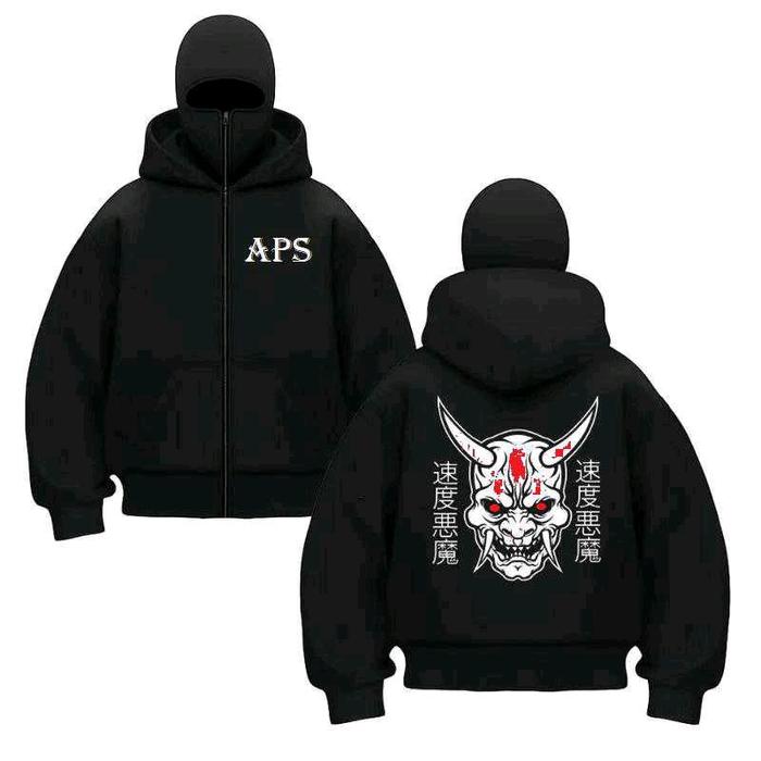 HOODIES BALACLAVA APS UNISEX METAL ZIPPER JAKET BOXY HITAM UKURAN M-XL JACKET NINJA KEREN. - TK IBLIS, M