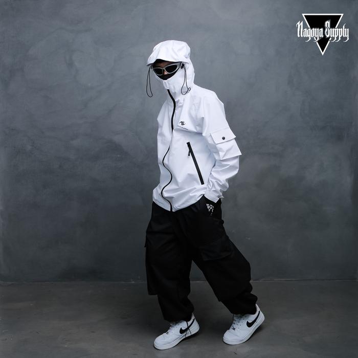 JAKET GORPCORE ANTI AIR WATERPROOF SIMPLE KEREN NAGOYA SUPPLY PRIA DAN WANITA - DISTRO, PARASUT - PUTIH, L