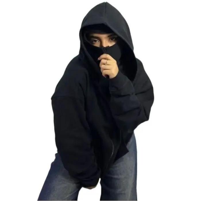 THOUSAND SWEATER HOODIE BALACLAVA ZIPPER JAKET BOXY HITAM UNISEX DISTRO FLEECE TEBAL PRIA WANITA - HITAM THOUSAND, M