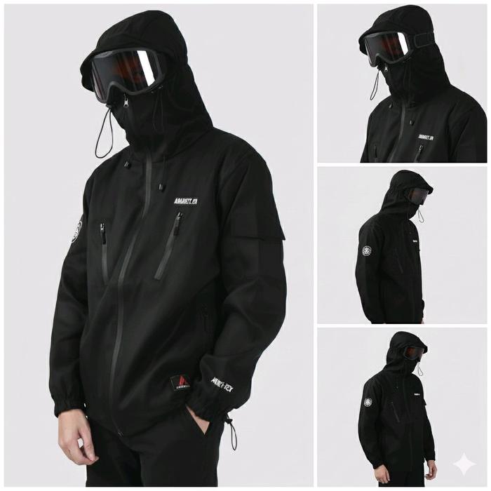 JAKET GORPCORE PRIA PARASUT TASLAN WATERPROOF OUTDOOR HIKING WINBREAKERS GUNUNG - HITAM GORPCORE, M