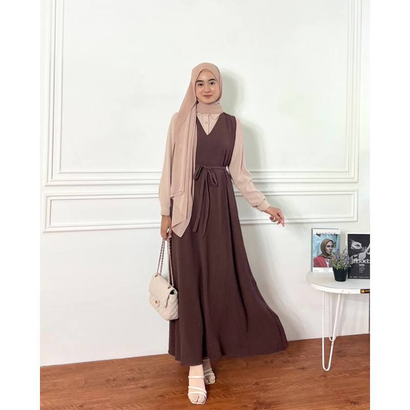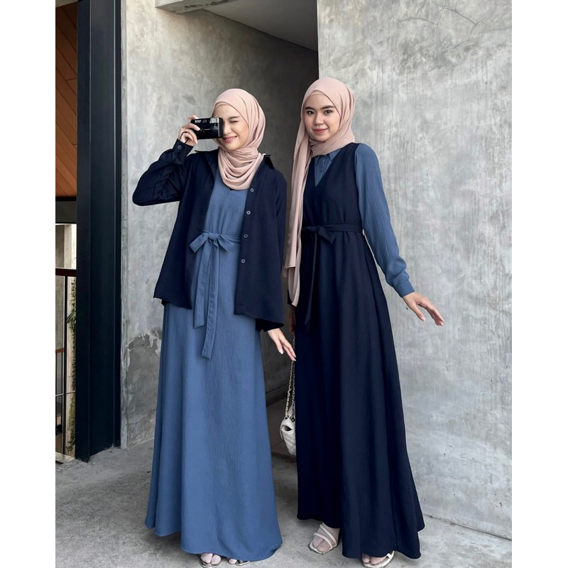 Dafinty Fathia Dress Set Kemeja Bahan Premium Crinkle Airflow Gamis Remaja Terbaru Kekinian