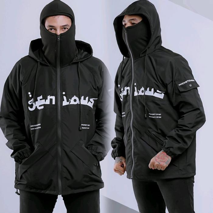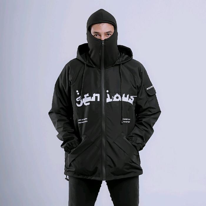 GNS OUTDOOR BALACLAVA JACKET GROPCORE BLACK LIGHT ARMORY WATERPROOF PARASUT CASUAL PRIA JAKET MOTOR ZIPPER - HITAM BALACLVA, L