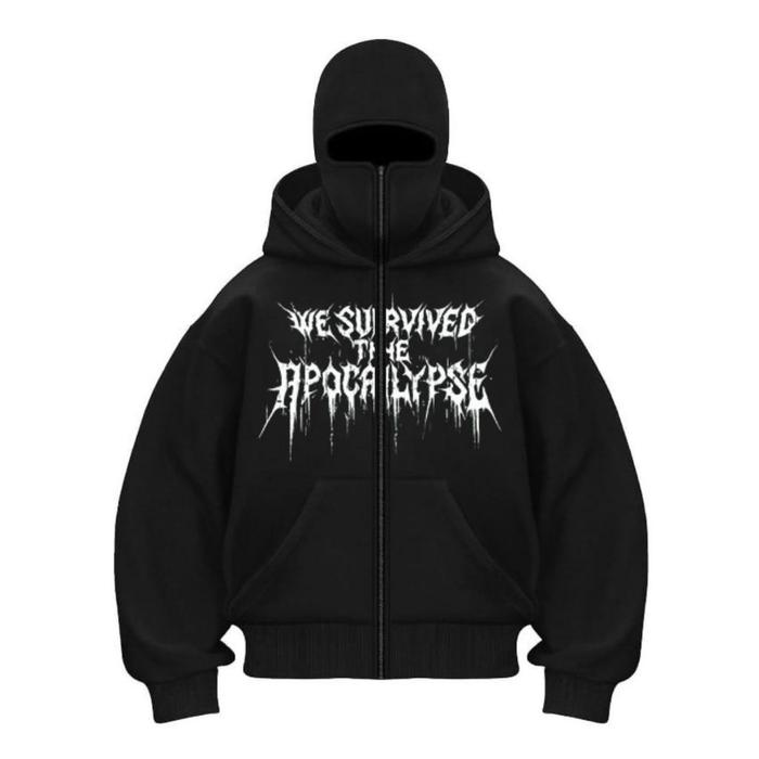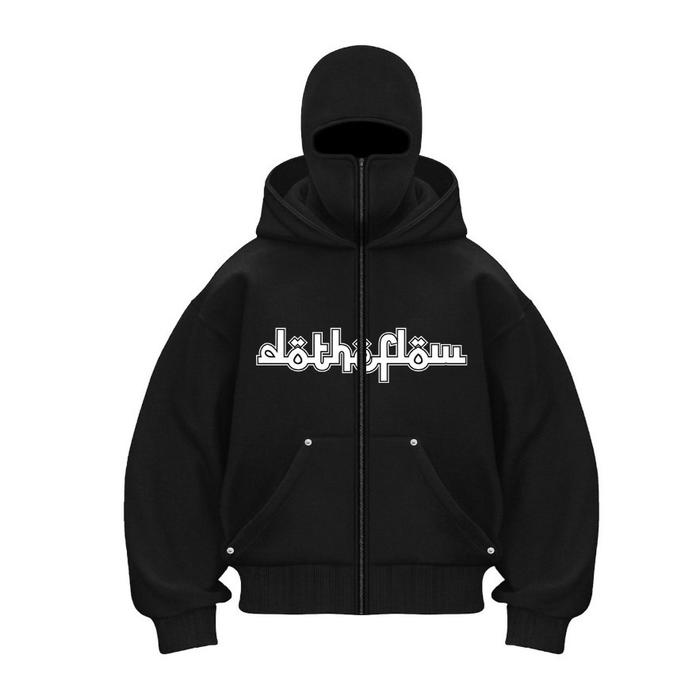 VOX 73 HOODIE BALACLAVA ARABIC UNISEX METAL ZIPPER JAKET BOXY HITAM UKURAN M-XL - GAMBAR 01, M