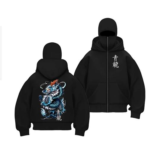 HOODIE BALACLAVA DRAGON BIRU 73 UNISEX METAL ZIPPER JAKET BOXY HITAM UKURAN M-XL JAKET MASKER - GAMBAR 01, M