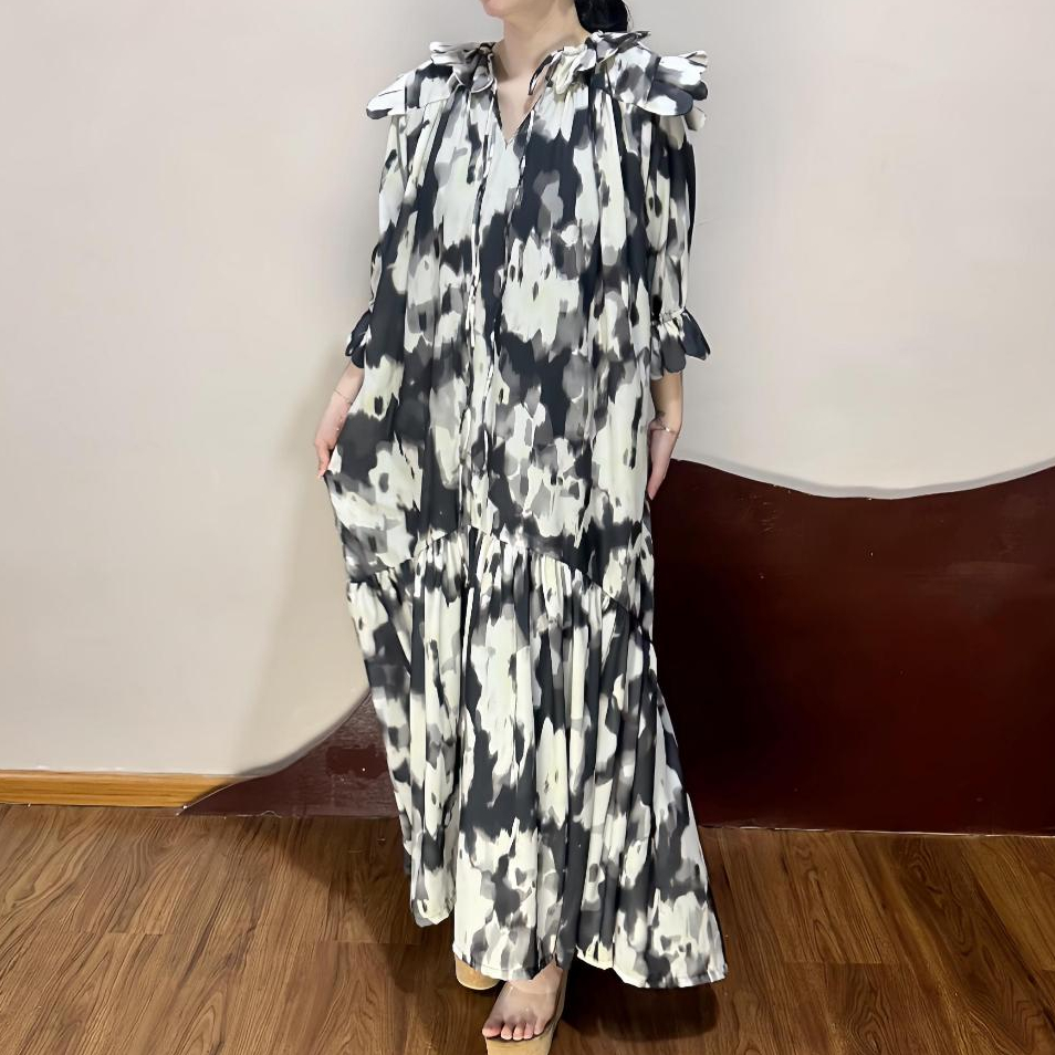 Sani– Basic Dress Panjang Premium Elegan Adem Full Furing Busui Bumil Mewah Casual Wanita Gaun Loose