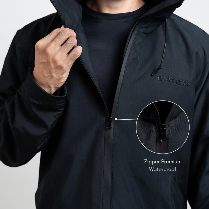 CARTIERA NOIR JAKET GORPCORE WATERPROOF JAKET GUNUNG PRIA OUTDOOR HIKING WINDPROOF TRIPLE PROTECTION SYSTEM - JET BLACK, S