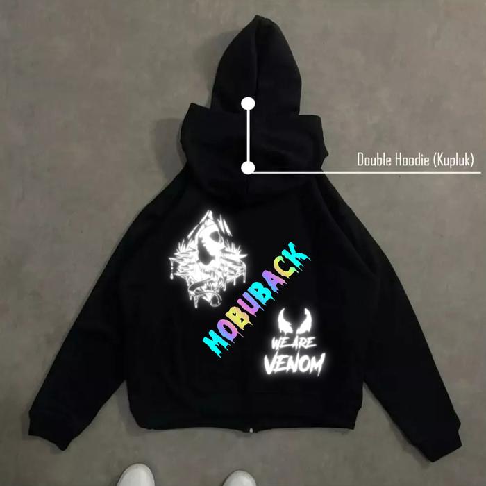 MOBUBACK VENOM SWEATER HOODIE BALACLAVA MENYALA REFLECTIVE ZIPPER JAKET BOXY REFLEKTIF NYALA UNISEX PRIA WANITA TERBARU 2025 KEREN - VENOM, M