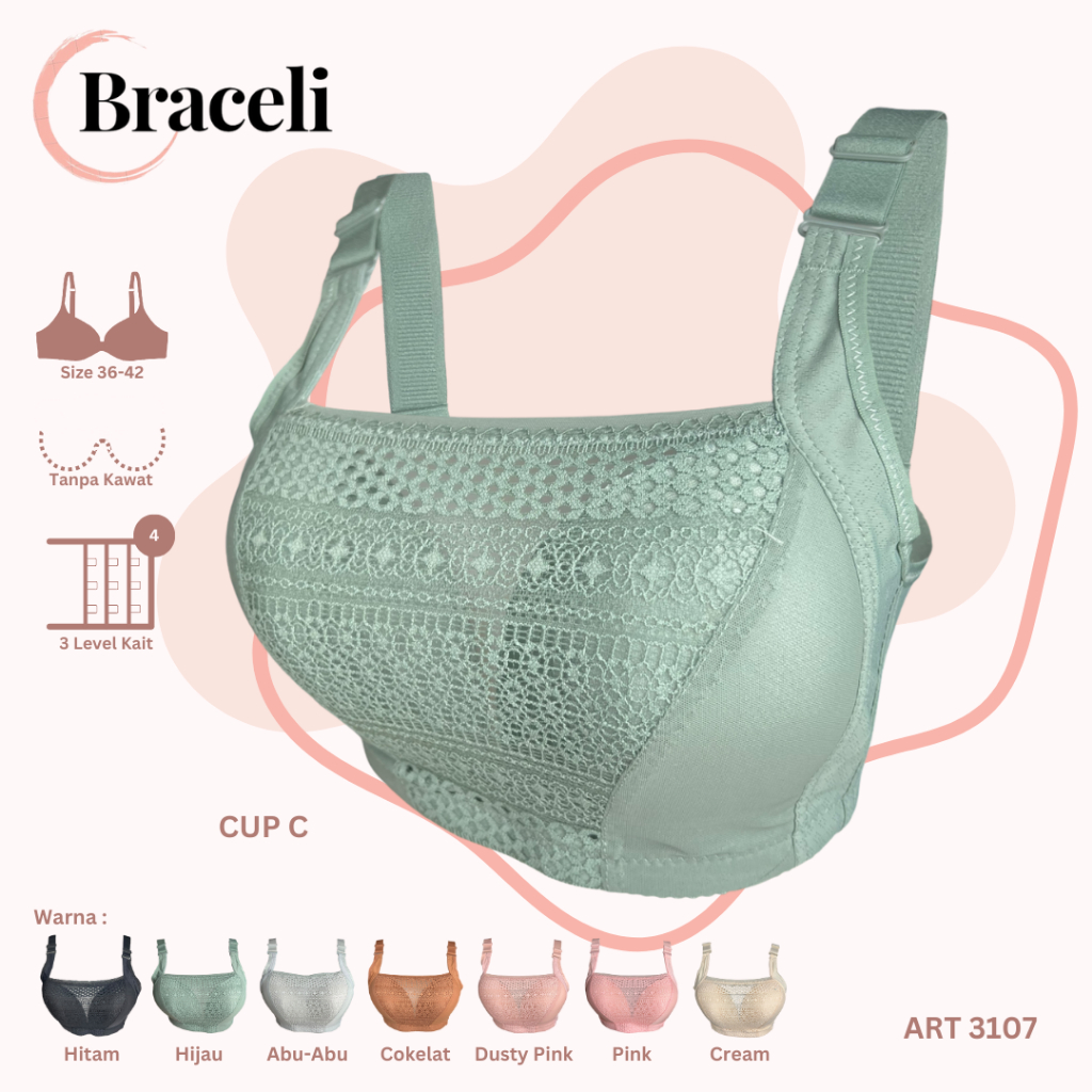 DAPAT 3 Pcs BRA Kemben Jumbo Tanpa Kawat Braceli Art 3410 CUP C Kait 4