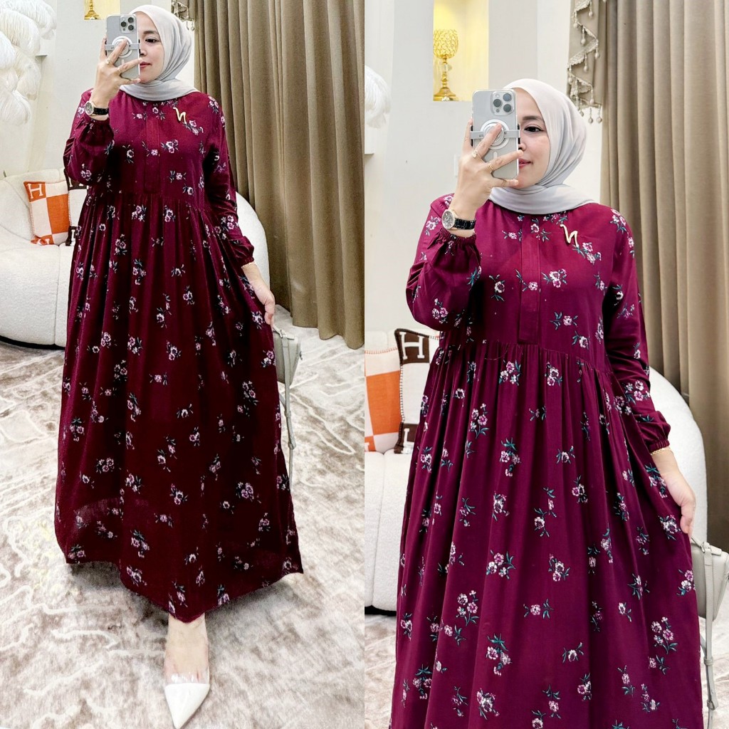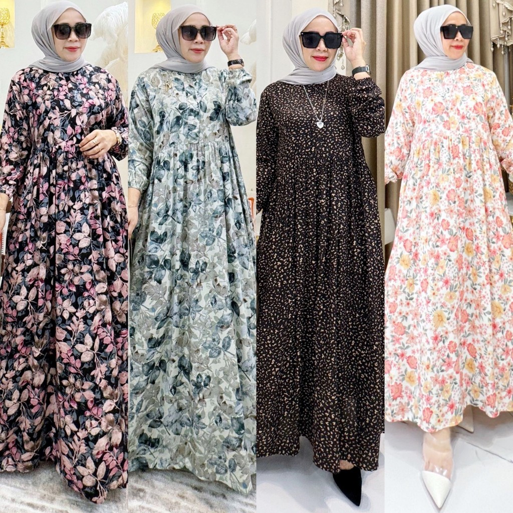 MIDI DRESS RAYON MOTIF JUMBO BUSUI FRENDLY FASHION MUSLIM
