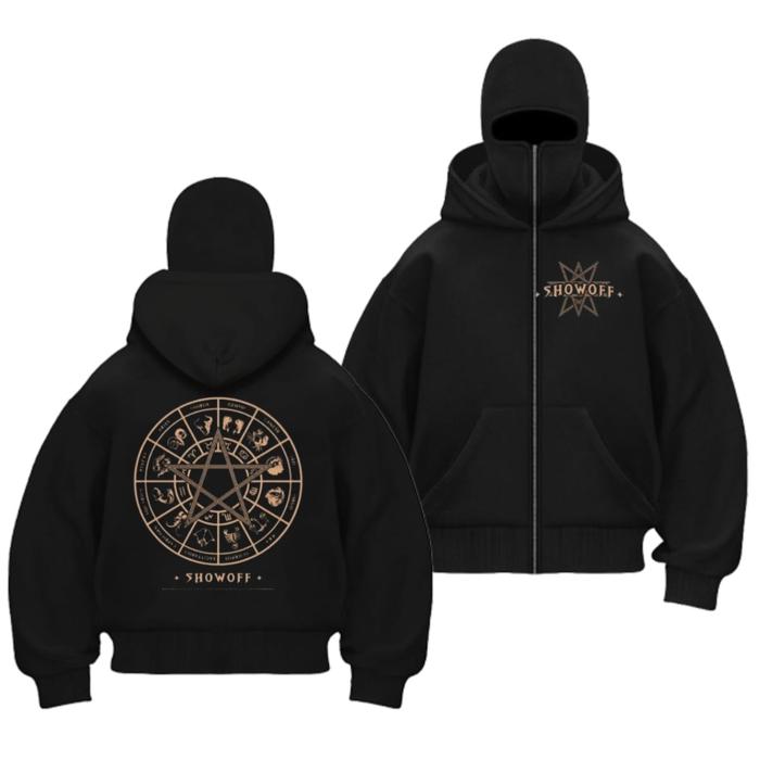 HOODIE ZIPPER BALACLAVA NINJA - JAKET BOXY LOGO BLASTER HITAM PULLPRIN PREMIUM UNISEX BAHAN FLEECE TEBAL - HITAM BLASTER, ANAK 6-8 TAHUN