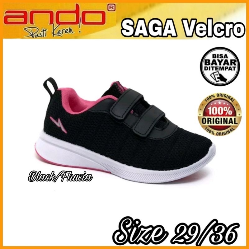 ANDO Sepatu Anak Sekolah Perempuan Kecil Remaja Tanggung Perekat Tempel Fashion Hitam Pink Size 29 sd 36