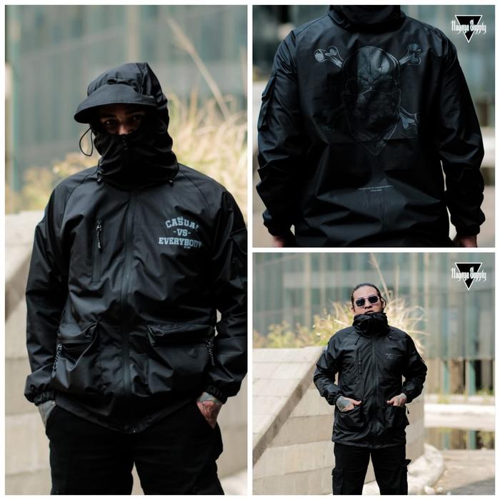 JAKET HOOLIGANS GORPCORE WATERPROOF WINDBREAKERS OUTDOOR TENGKORAK ABU SERIES - JAKET ANTI AIR UNISEX - TENGKORAK 2, M