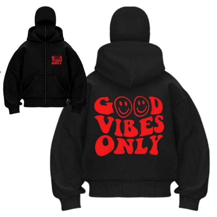 HOODIE BALACLAVA ANGEL&DEMON UNISEX METAL ZIPPER JAKET BOXY HITAM UKURAN M-XL - GAMBAR 01, M