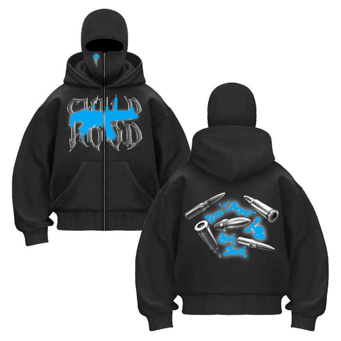VOX HOODIE BALACLAVA FENEEMY BIRU UNISEX METAL ZIPPER JAKET BOXY HITAM UKURAN M-XL - GAMBAR 01, M