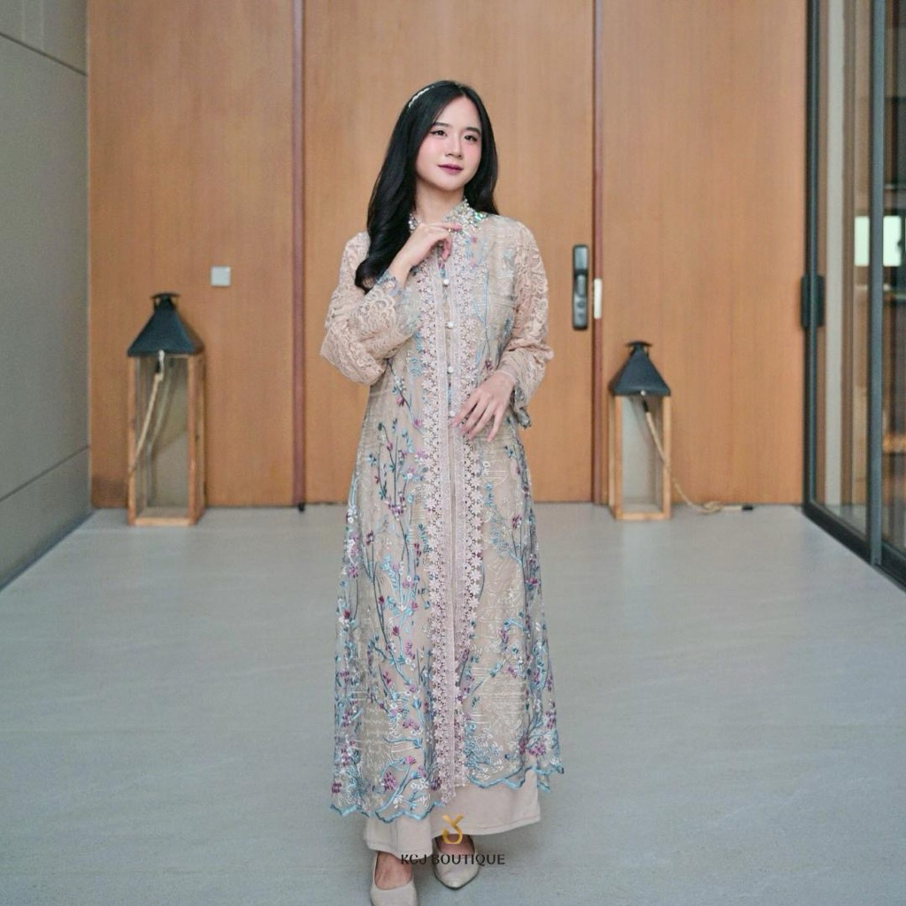 Kcj Dress Outer SAGITA Tile Bordir Kombinasi Brukat dan Payet