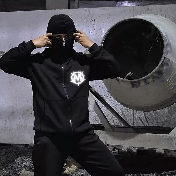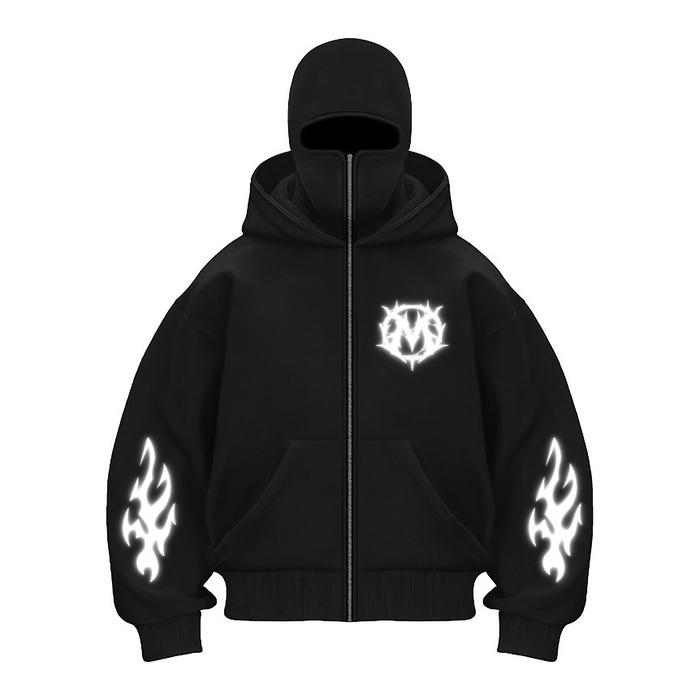 MOBUBACK HELLBORN SWEATER HOODIE BALACLAVA MENYALA REFLECTIVE ZIPPER JAKET NINJA BOXY REFLEKTIF NYALA UNISEX PRIA WANITA TERBARU 2025 - HELLBORN, M