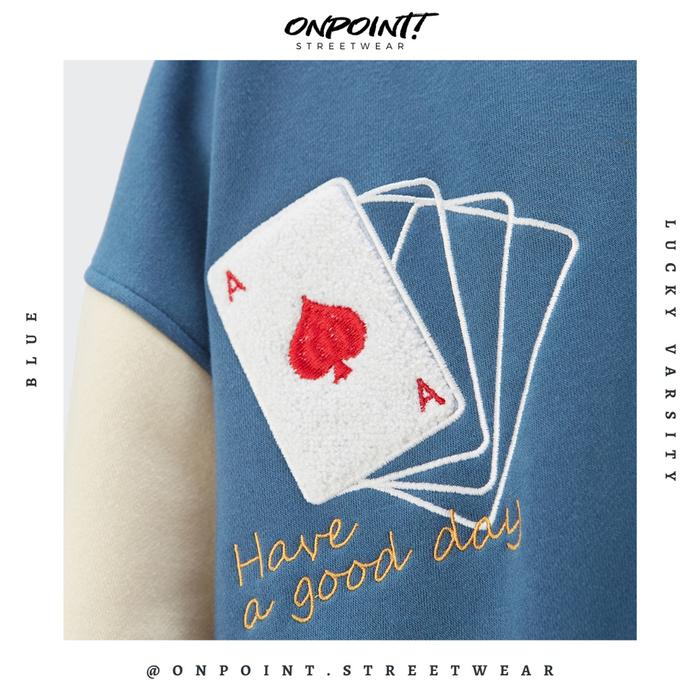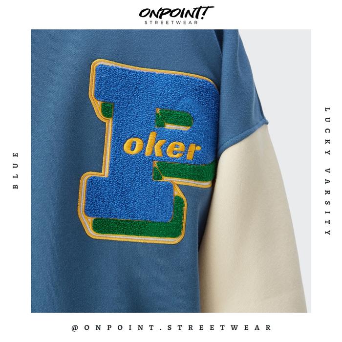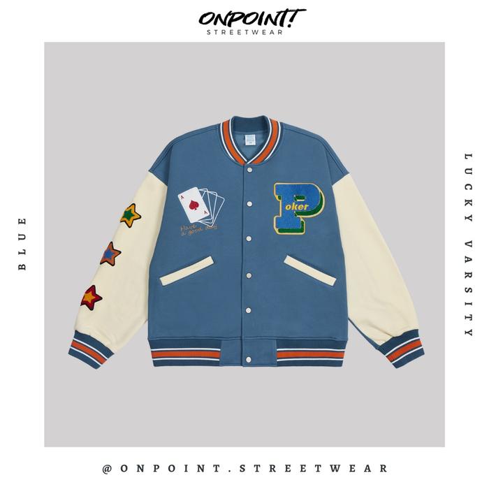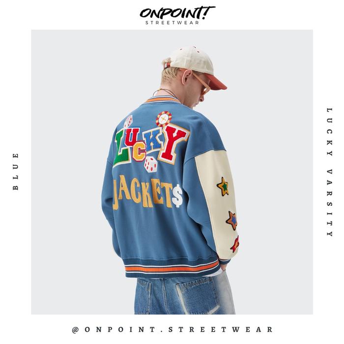 LUCKY VARSITY - JAKET PRIA JAKET VARSITY PRIA VARSITY JACKET VARISTY BASEBALL JAKET VARSITY ORIGINAL JAKET VARSITI ORI FASHION PRIA BAJU PRIA STREETWEAR JAKET KOREA PRIA - BIRU, M