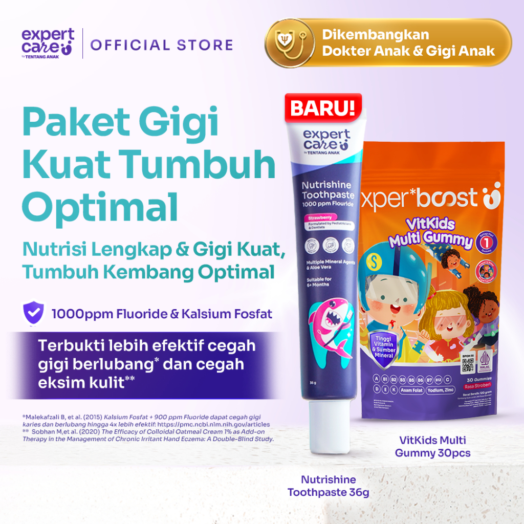 Paket Bundling Skincare Bayi dan Anak Expert Care Toothpaste Pasta Gigi Bayi & Anak Flouride 1.000ppm + Expert Boost Gummy Vitamin + Buku Tentang Anak