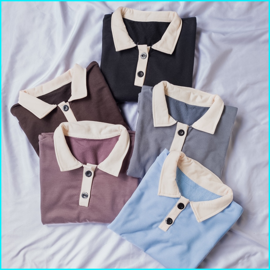 Sweater Wanita Collar Girl Korean Style Colar Sweatshirt Sweater Kerah Dengan Kancing Polos Button Jane Fashion Allsize