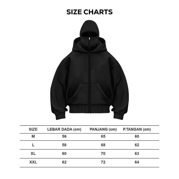 HOODIE BALACLAVA ZIPPER THOUSAND UNTUK PRIA DAN WANITA - MODEL BOXY HITAM - NYAMAN - HITAM TEXS THOUSAND, M