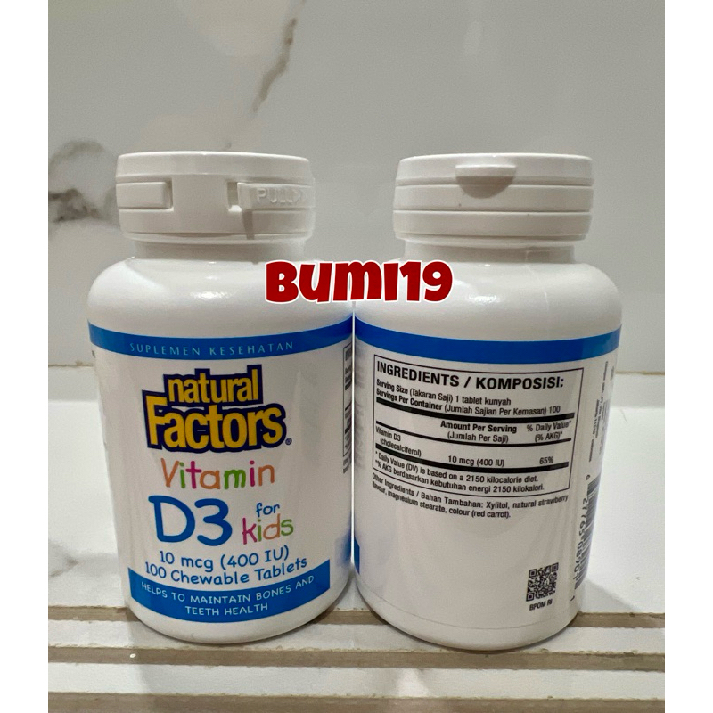 California 9OLD Baby D3 400iu Natural Factors Vitamin D3 Kids 400iu 100 tablets 250 tablets
