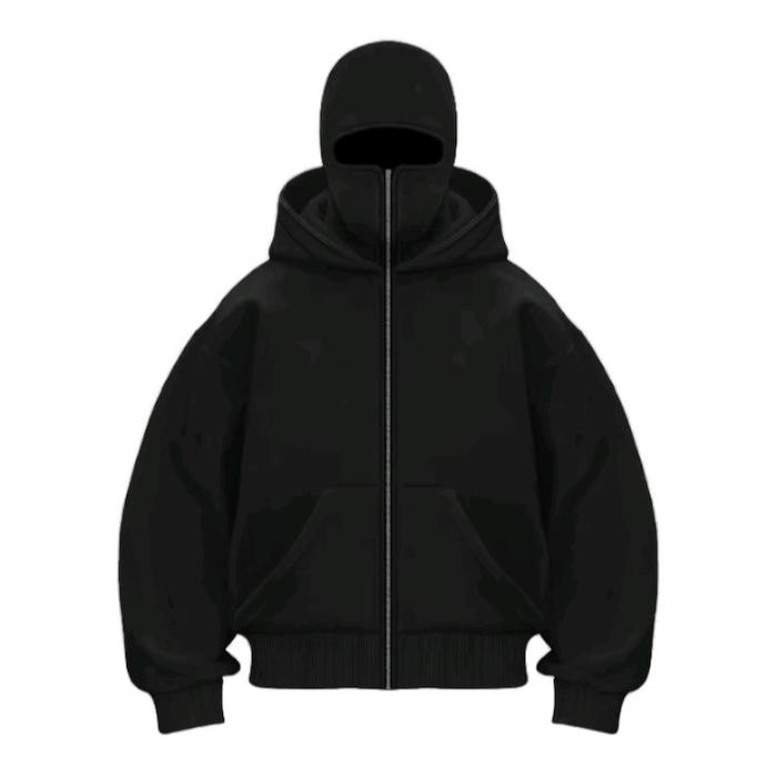 SWEATER HOODIE BALACLAVA ZEPPER JAKET HITAM POLOS UNISEX DISTRO FLEECE TEBAL PRIA WANITA ZIPPER HITAM - M