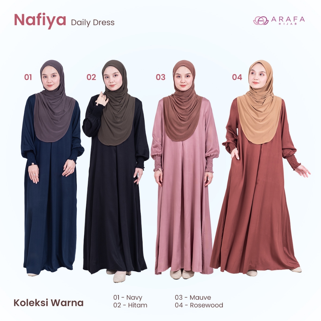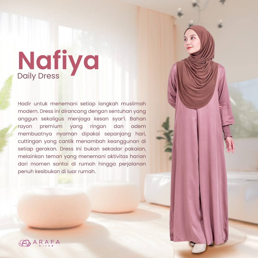 Arafa Hijab – Nafiya Dress Gamis Syar’i Rayon Viscose Premium Daily Wear Adem Ringan & Anggun