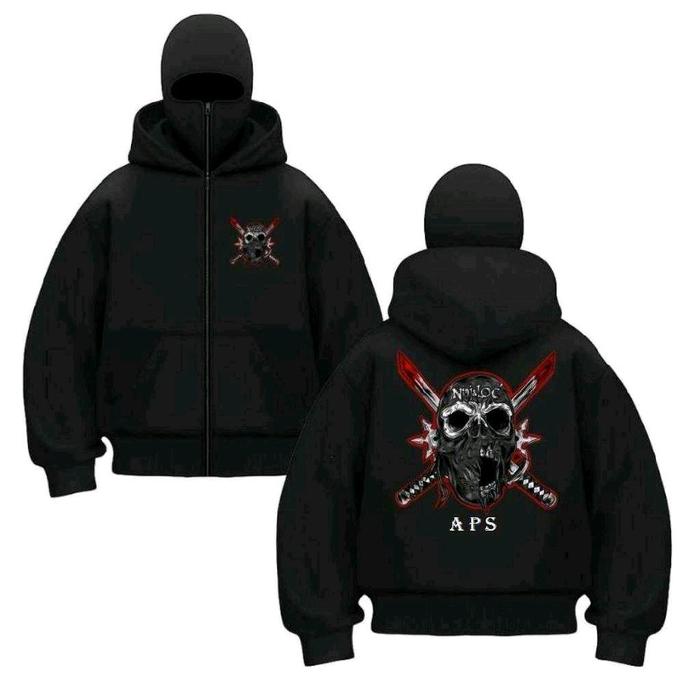HOODIES BALACLAVA FENEMYY UNISEX METAL ZIPPER JAKET BOXY HITAM UKURAN M-XL JAKET NINJA BASIC - FENEMYY, M