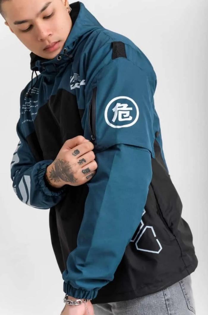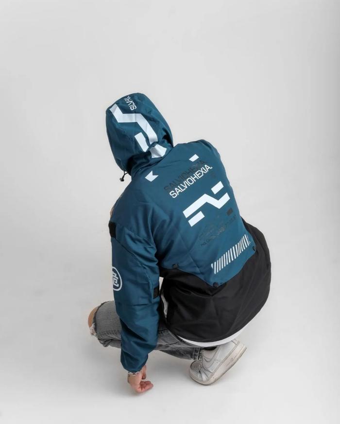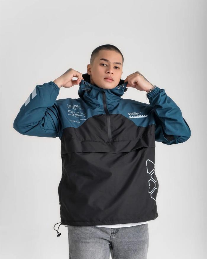 SLVHX CAGOULE JACKET PARACHUTE WINDBREAKER WATERPROOF CYBER PETROL BLACK - L