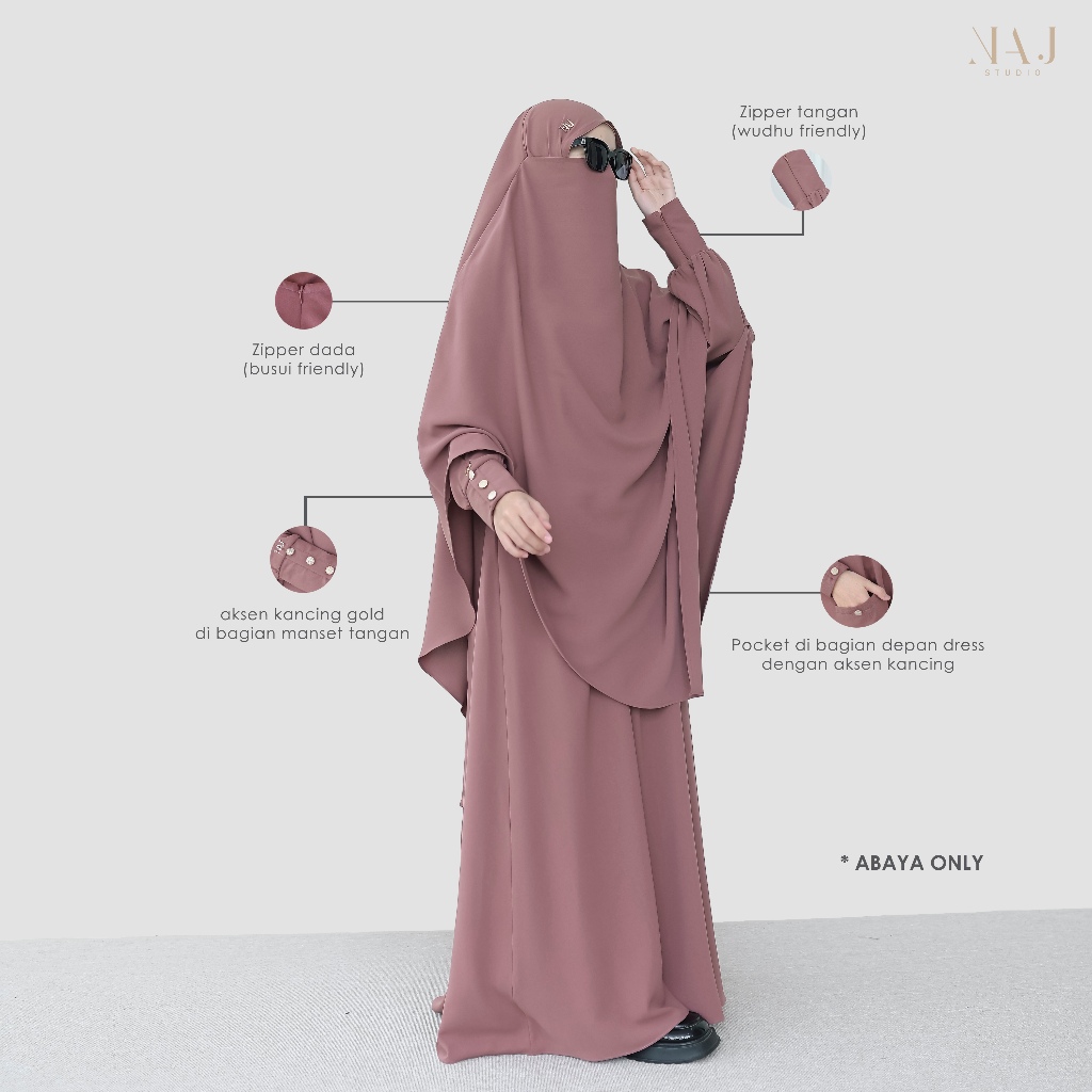 NAJ Studio ABAYA ONLY Yerra Abaya Anti UV Gamis Polos Outfit Umroh Haji Premium