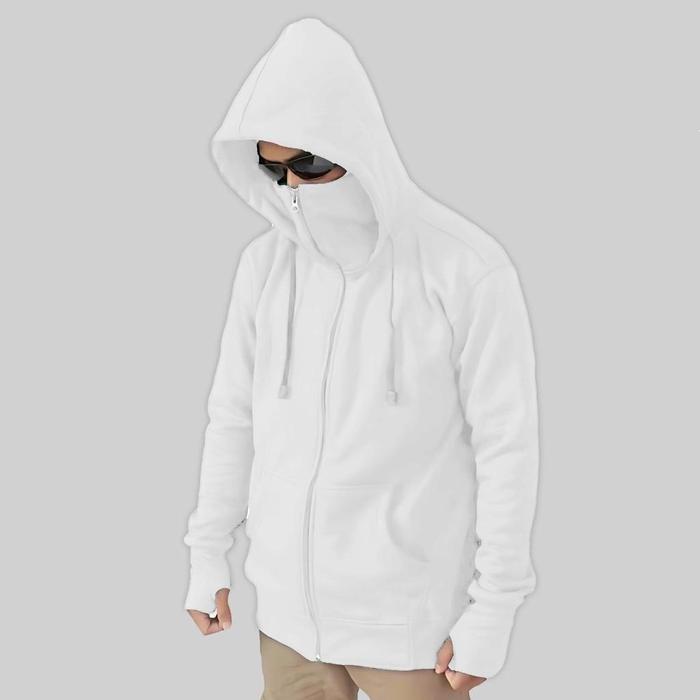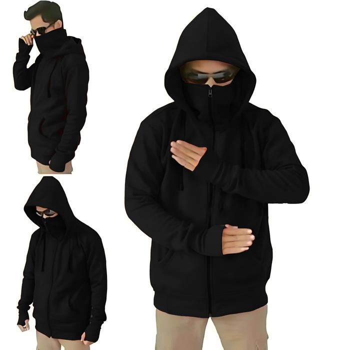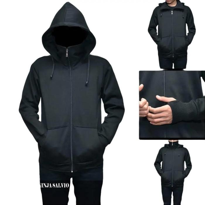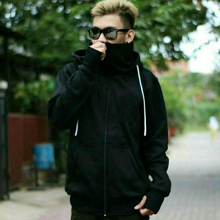 JAKET NINJA ZIPPER POLOS BALACLAVA PREMIUM HITAM LOONG ZIP PRIA WANITA FLEECE LEMBUT DISTRO PANJANG - HITAM, L