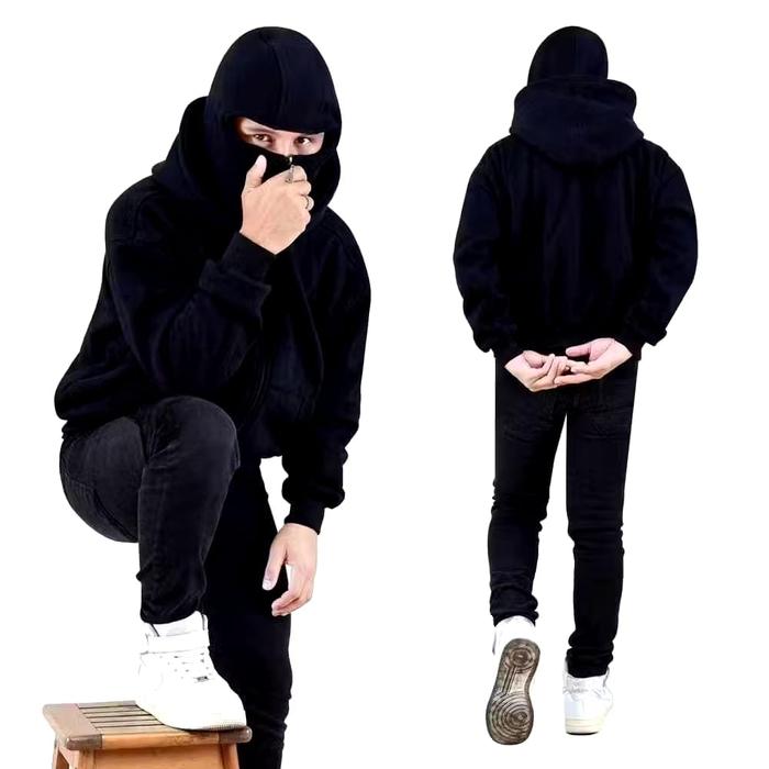 HOODIE ZIPPER BALACLAVA 280GSM - JAKET BOXI BLACK - HITAM, ANAK 6-8 TAHUN