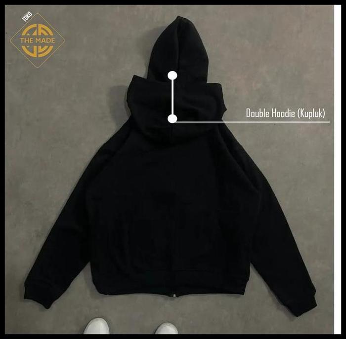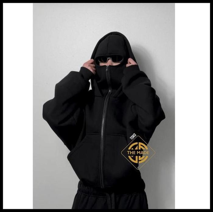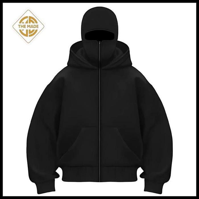 TERLARIS THE MADE HOODIE BALACLAVA ZIPPER BOXY BLACK DOUBLE KUPLUK BAHAN TEBAL KEREN SWEATER JUMPER PRIA WANITA HITAM DISTRO NYAMAN SIMPLE BEST SELLER - HITAM, M