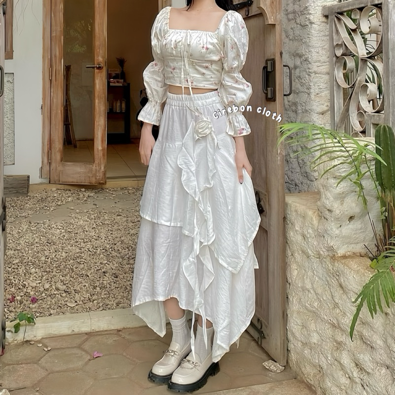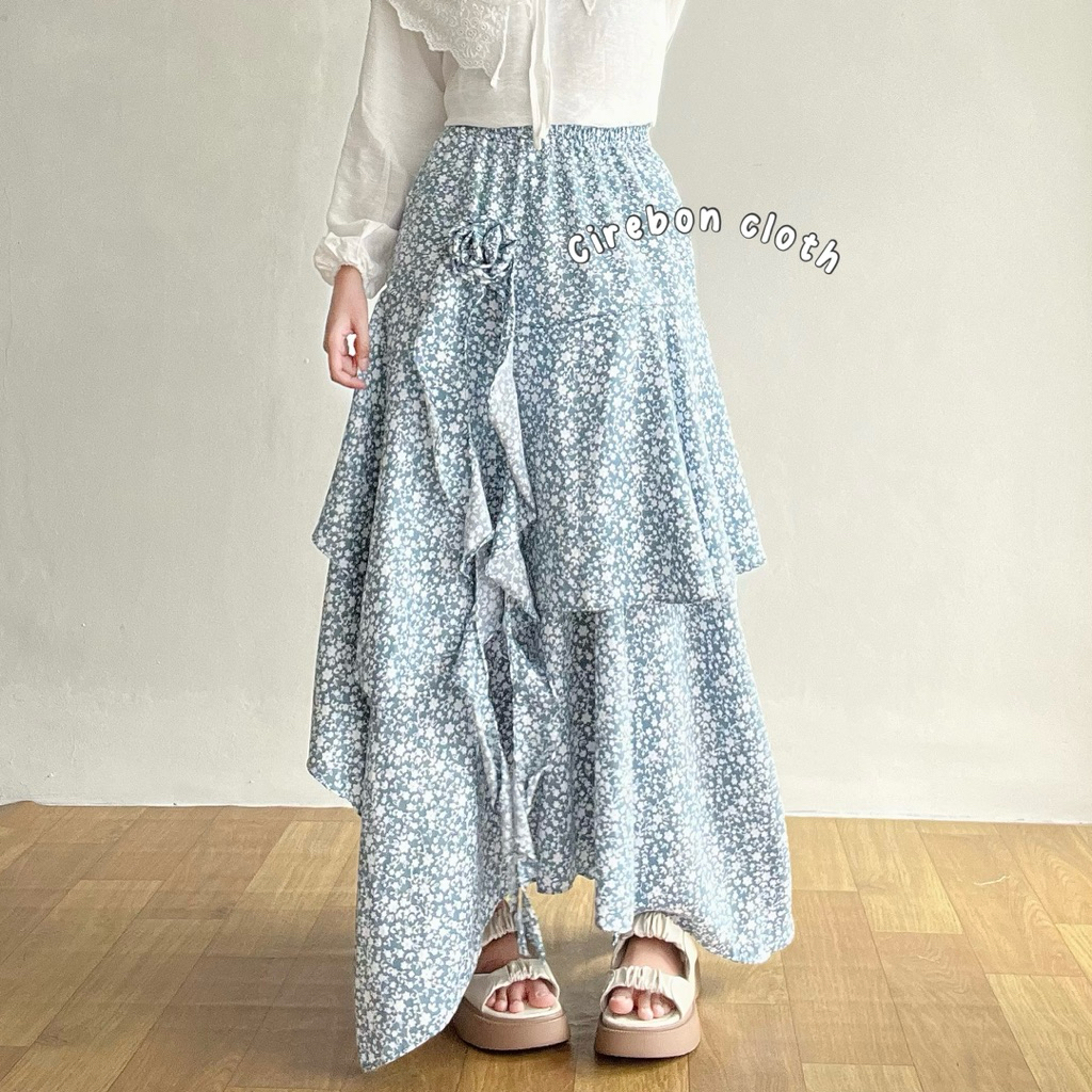 KIYANA Cirebon Cloth - Bellerose Skirt / Aesthetic Skirt / Rok Bunga / Rok Asimetris
