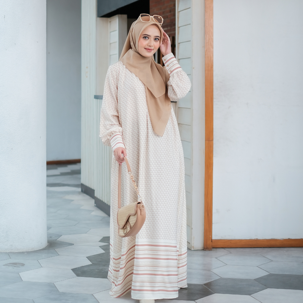 Elzatta Long Dress Gamis Border L Monogram Satin