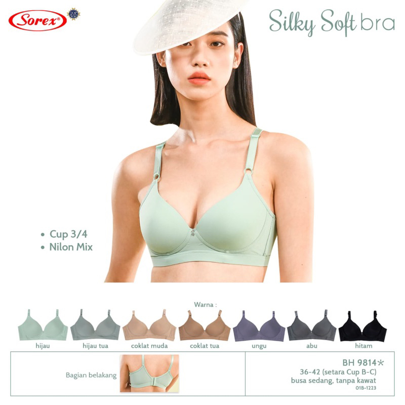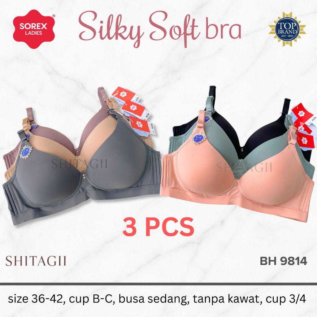 3 Pcs Sorex Bra Cup Besar Tanpa Kawat Busa Kait 3 Setara Cup BC Silky Soft Bra Harian BH 9814
