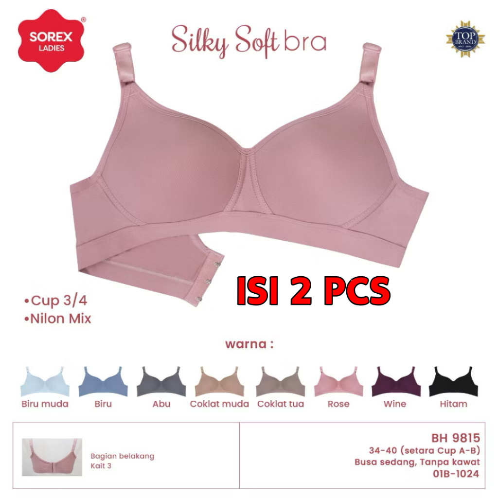 2 Pcs BH Sorex Busa Sedang Cup Sedang Tanpa Kawat Kait 3 Cup AB Silky Soft Bra Harian BH 9815