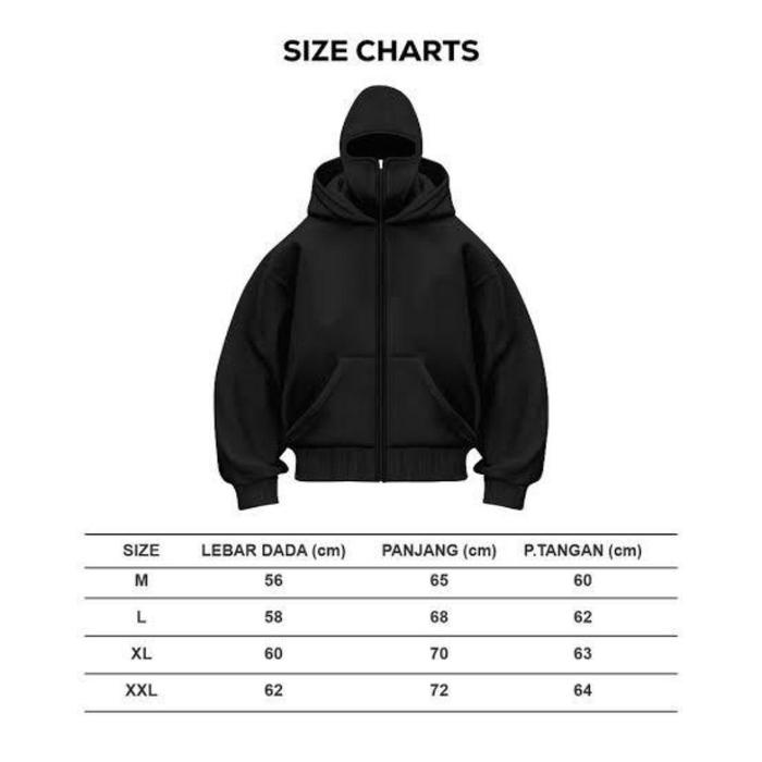SJ HOODIES BALACLAVA UNISEX HITAM ZIPPER BOXY FLEECE 280 GSM RITSLETING BESI DOUBLE KUPLUK SIZE M-XXL - HITAM 01, M