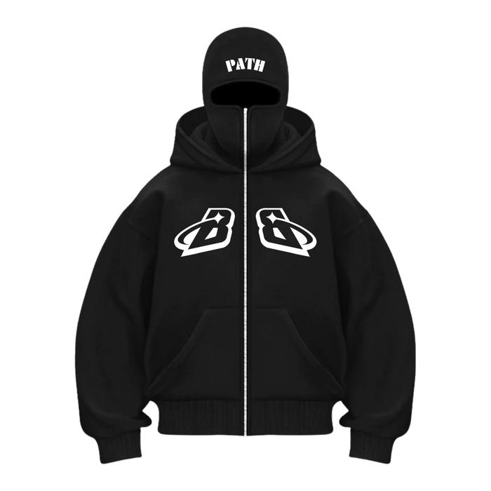 BRIGHPATH - JAKET NINJA PRIA HOODIE BALACLAVA BLACK B&B MATT SOFT FLEECE ZIPPER HITAM TEBAL SABLON DIGITAL PRINTING - M, HITAM B&B