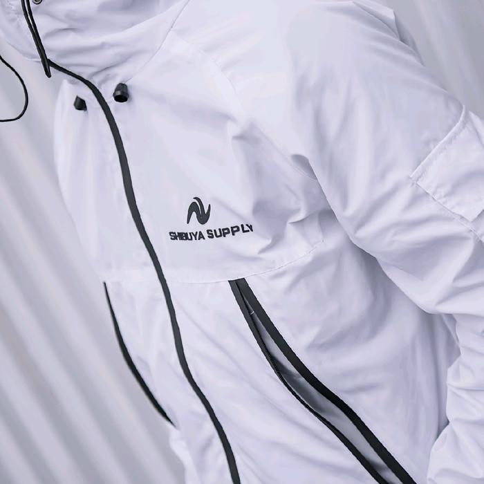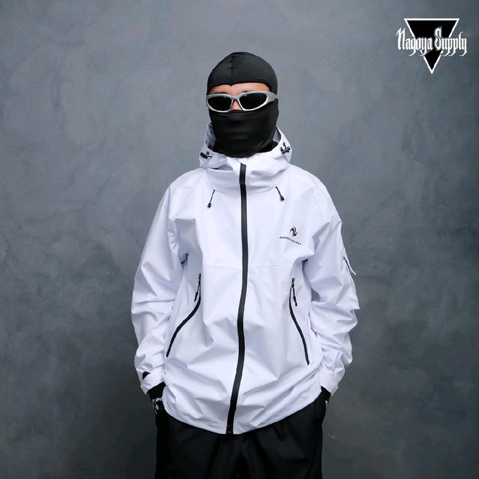 JAKET GORPCORE PUTIH WATERPROOF ORIGINAL NAGOYA MOTOR SUNMORI JAKET PRIA OUTDOOR WATERPROOF WINDBREAKER PARASUT KEREN HITAM - CAGOLE 3WARNA, L