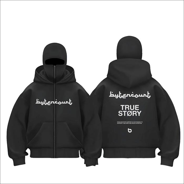 HOODIE BALACLAVA METAL ZIPPER JAKET BOXY BYTENCORT - HITAM1, M