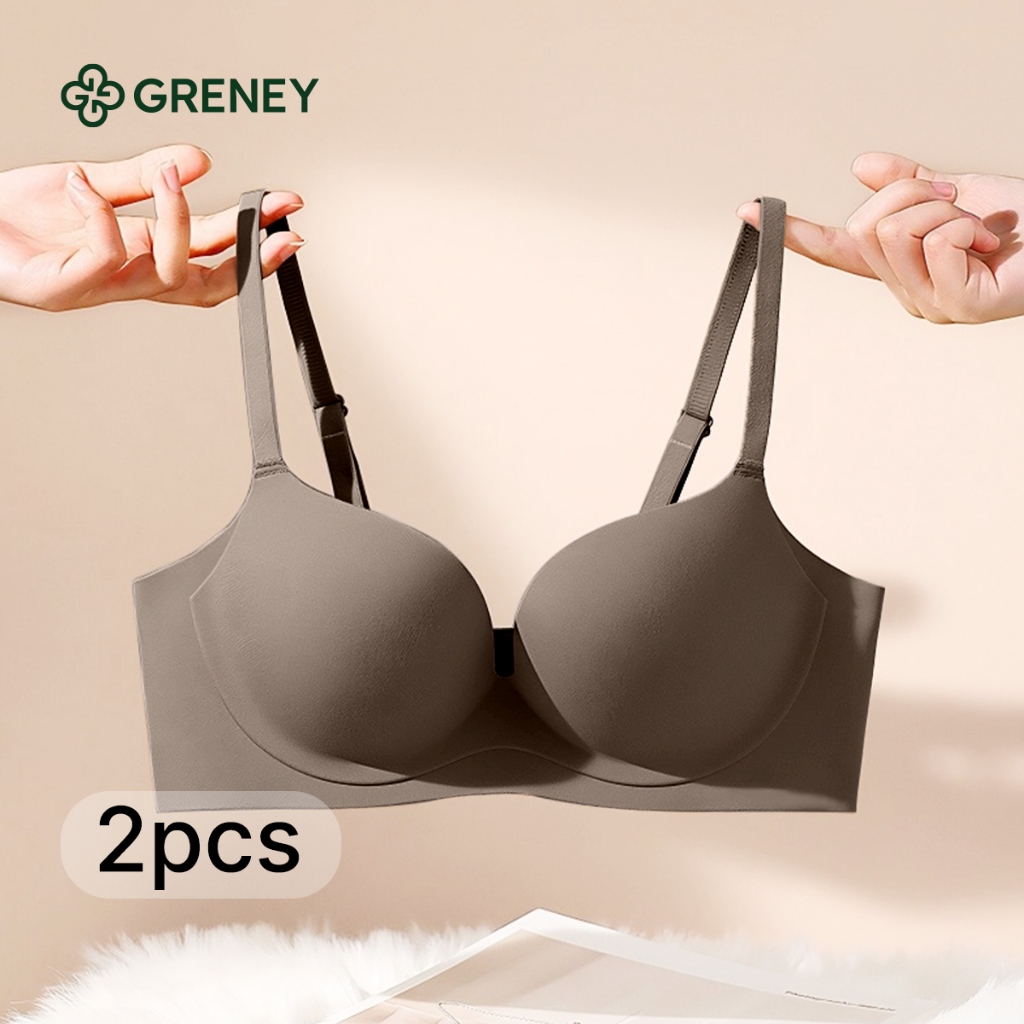 GRENEYGbrasBra 2pcs One Piece Warna Kombinasi Tanpa Kawat Warna Sport Push Up 89616